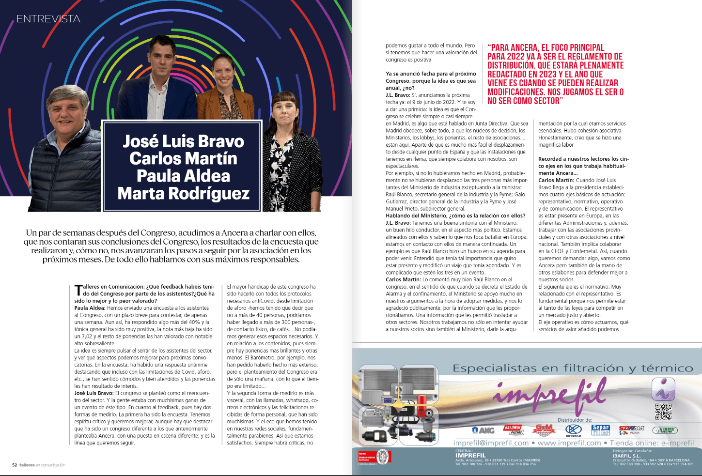 Interesante es también la entrevista multi-banda, realizada al equipo organizador del Congreso y cabeza visible de ANCERA: José Luis Bravo, presidente; Carlos Martín, secretario general; Paula Aldea, directora de comunicación y marketing, y Marta Rodríguez departamento financiero. ¡Os la recomendamos!